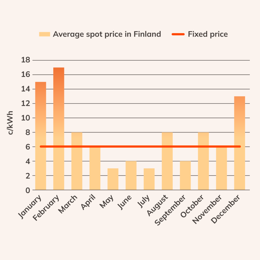 The price is the difference between the monthly fixing price and the Finnish average spot price for that month