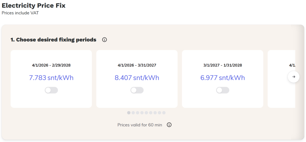 Choose the price fixing period you want. You can choose, for example, one month or up to two years.