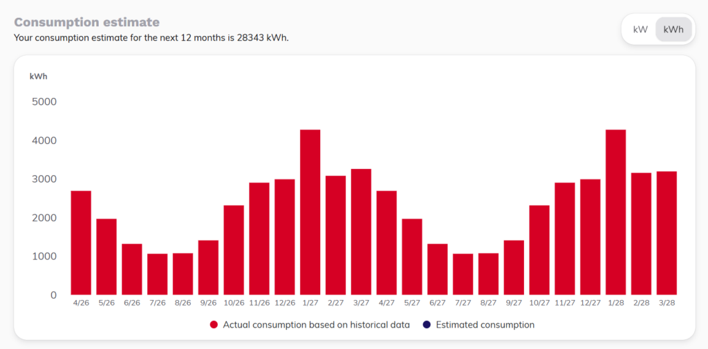 Price fixings are always based on a forecast of your future electricity consumption. We create the forecast for you, so you do not need to estimate it yourself.