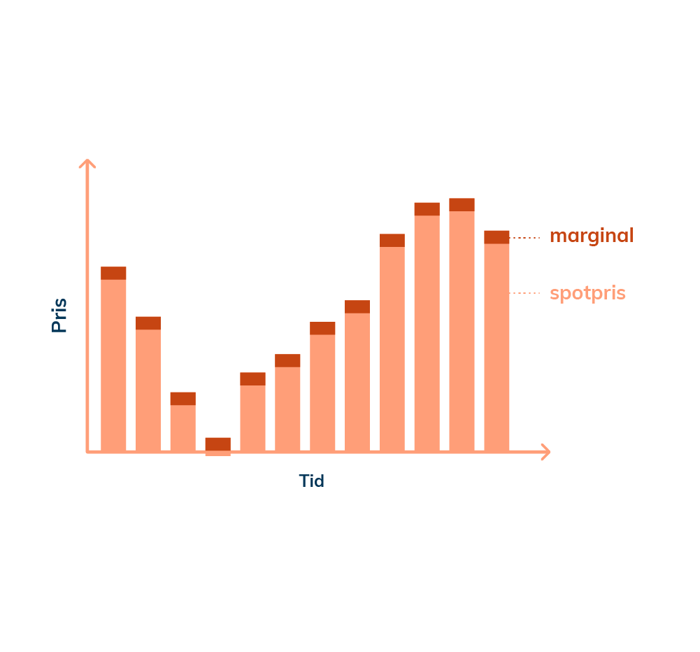 Priset baseras på spotel, och du kan vid behov göra en tidsbunden prissäkring.