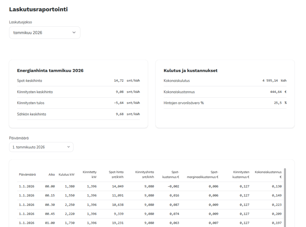 Kiinnitetylle osuudelle on ostettu sähköä ennakkoon tietyllä hinnalla. Tämä hinta vaikuttaa laskutukseesi vartti kerrallaan Spot-hintaan verrattuna.