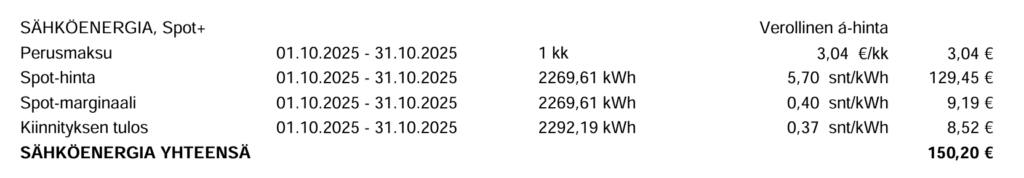 Hinta on kk:n kiinnityshinnan ja Suomen spot-keskihinnan erotus.